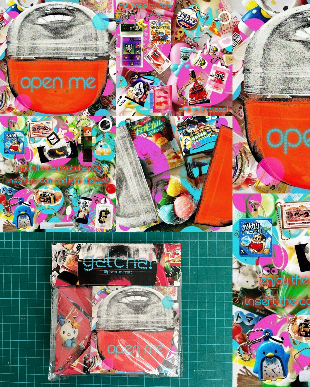 My GATCHA! zine set contains a parcel envelope zine, an infinity flipping zine and a little print-out and a random gacha keychain worth around $4!